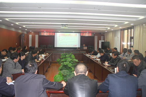 党委书记、董事长张国虎以“深入学习贯彻党的十九大精神”为主题就党的十九大报告的主题和主要成果、习近平新时代中国特色社会主义思想、过去五年的历史性成就和历史性变革、中国特色社会主义进入新时代、我国社会主义矛盾的变化、两个一百年奋斗目标的战略部署、我国经济社会发展的重大战略部署和坚持关于坚定不移的推进全面从严治党的问题等八个方面向与会人员全面详细的宣讲了党的十九大报告的重要内容。张国虎在党课上要求全司党员、特别是党员领导干部要认真学习,仔细研读党的十九大报告原文和修订后的党章,要求大家自觉用党的十九大精神和习近平新时代中国特色社会主义思想武装头脑,不断加强政治理论素质,提高党建工作质量,坚持理论与实践相结合的方针,不断推动全司各项工作迈上新的台阶。
